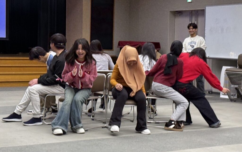 学生がクリスマス会のプログラムを計画して、各グループがクリスマスについて考え、
